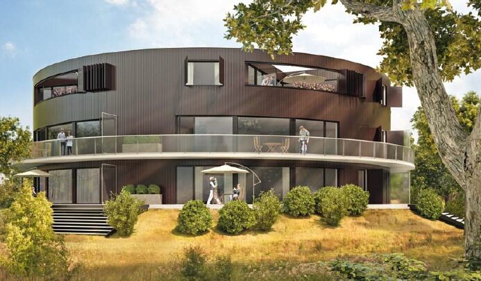 Het gebouw heeft een ronde vorm met vanuit elk appartement een prachtig uitzicht op de prachtige natuur. Het gebouw bestaat uit verschillende appartementen met elk een ruim terras en bovenin liggen nog 2 penthouses met een ruim dakterras. In totaal 10 ruimte appartementen met elk een eigen parkeerplaats in de parkeerkelder.